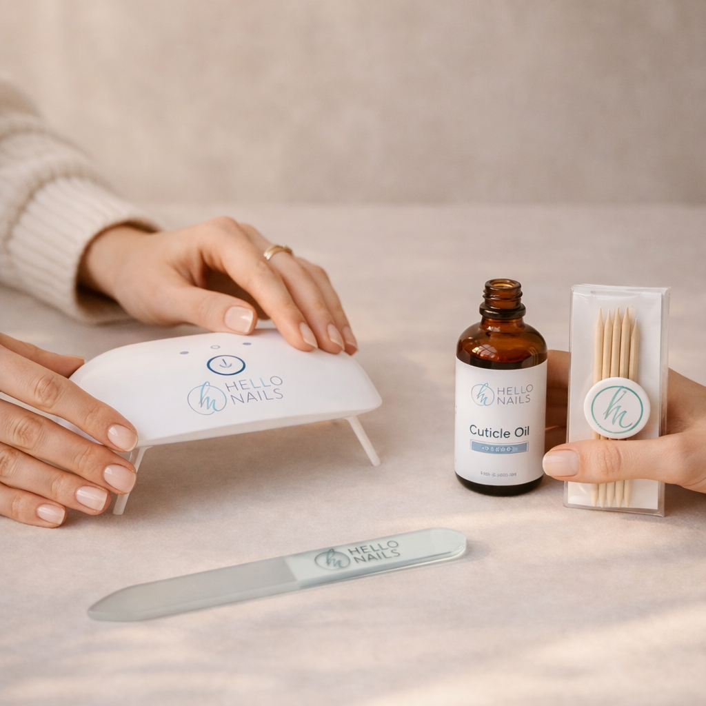 At Hello Nails, my mission is simple: salon-quality nails at home that save you time and money. Our semi-cured gel and stick-on wraps are quick to apply, last for weeks, and contain no HEMA or TPO.